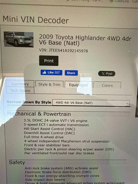 The 2009 Toyota Highlander offers a blend of performance and comfort, powered by a robust 3.5L V6 engine generating 270 horsepower and 248 ft-lbs of torque. Factory default features include a spacious cabin with seating for up to seven, dual-zone climate control, and a premium audio system with six speakers. Additional conveniences include keyless entry, power windows and locks, and a rearview camera for enhanced visibility. With a fuel efficiency of 17 MPG in the city and 23 MPG on the highway, this Highlander is designed for both urban driving and longer journeys. This vehicle is in excellent overall condition, ready to deliver reliability and versatility.